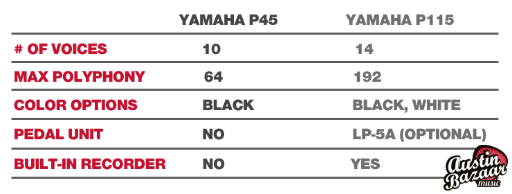 Difference between Yamaha P45 and P35
