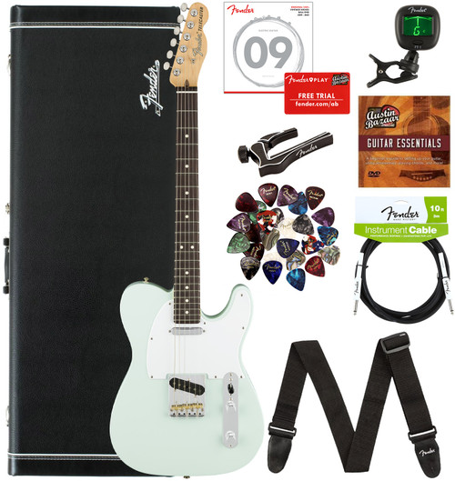 Fender American Performer Telecaster, Rosewood - Sonic Blue Bundle with Hard Case, Gig Bag, Cable, Tuner, Strap, Strings, Picks, Capo, and Austin Bazaar Instructional DVD