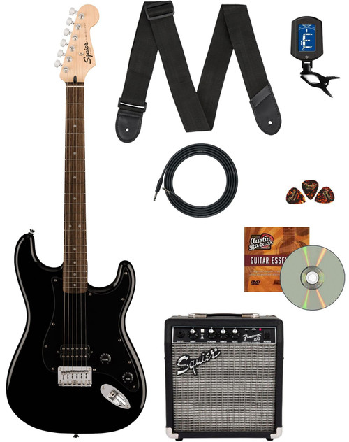 Fender Squier Sonic Stratocaster HT H - Black Bundle with Frontman 10G Amplifier, Tuner, Strap, Cable, Picks, and Austin Bazaar Instructional DVD