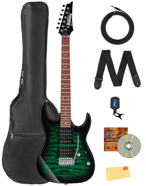 Ibanez GRX70QA RG Gio Electric Guitar - Transparent Emerald Burst Bundle with Gig Bag, Strap, Instrument Cable, Austin Bazaar Instructional DVD, and Polishing Cloth